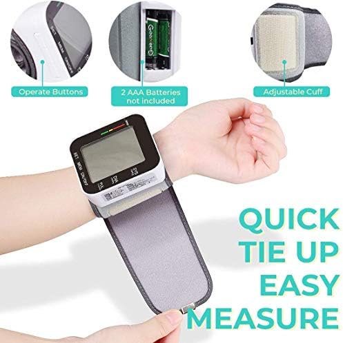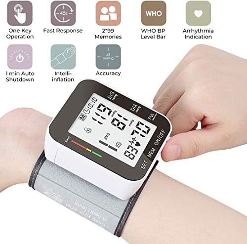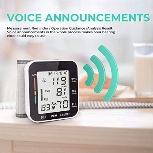 Blood Pressure Monitor Voice Broadcast Automatic Wrist High Blood Pressure Monitors Portable LCD Screen Irregular Heartbeat Monitor with Adjustable Cuff and Storage Case Powered by Battery – Black