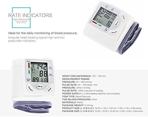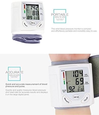 Blood Pressure Monitor Wrist Adjustable Wrist Cuff Digital Home Blood Pressure Meter Accurately Detects Blood Pressure Heart Rate and Irregular Heartbeat, Large LCD Display (White)