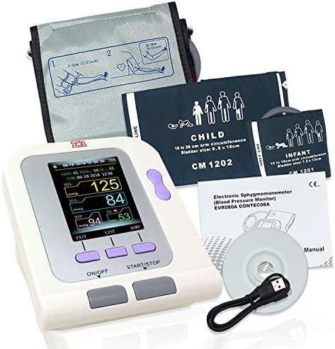 This order includes one Sphygmomanometer with 3 cuffs for adults, children and infants, CD software, USB cable, English user manual. Uses 4 AA batteries (not included).
