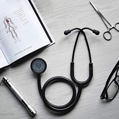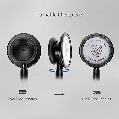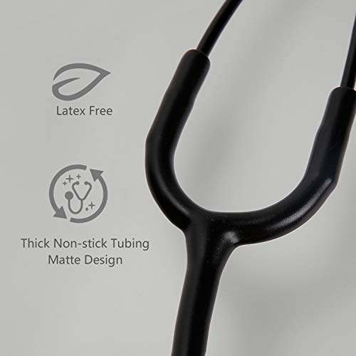 FriCARE Lightweight Dual Head Stethoscope for Medical Professionals Doctors, Aluminum Chestpiece and Headset, All Black Matte Finish Tube