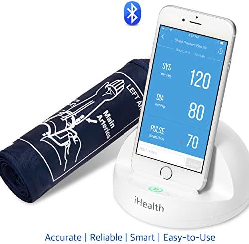 Fits upper arms with diameter of 8.7″-14.2″ (22-36cm). Take control of your health with easy, accurate blood pressure readings anytime, anywhere right from your iOS or Android device. Clinically tested and FDA approved, the iHealth Ease Blood Pressure Monitor meets rigorous standards for quality worldwide, but is priced below most traditional blood pressure monitors, making its smart, medical grade technology accessible to everyone. The Ease uses Bluetooth Smart technology to connect with your smartphone or tablet. The MyVitals app automatically logs and tracks your readings, and allows one-touch data sharing in PDF or spreadsheet format to keep your doctor or caregivers in the loop. The new Triple-Check feature ensures thorough, accurate data, and every reading is stored in your secure iHealth account and charted with past readings to give you a clear overview of your blood pressure trends at a glance. Take control of your health with the iHealth Blood Pressure monitor. Measure. Track. Share.