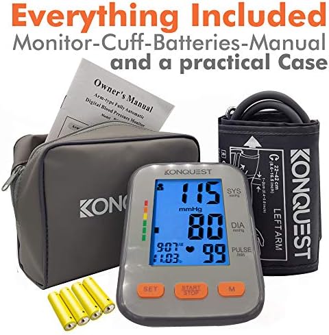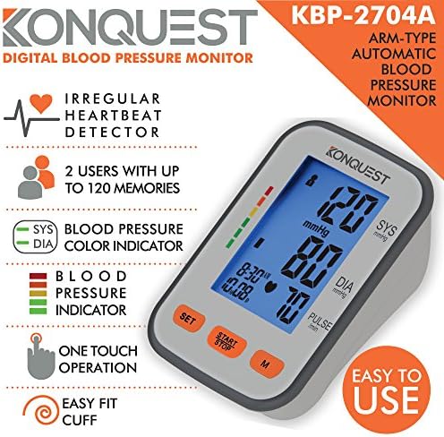 The Konquest KBP-2704A Digital Blood Pressure Monitor accurately helps you keep track of your systolic/diastolic blood pressure and heart rate with date and time stamp easily at home.