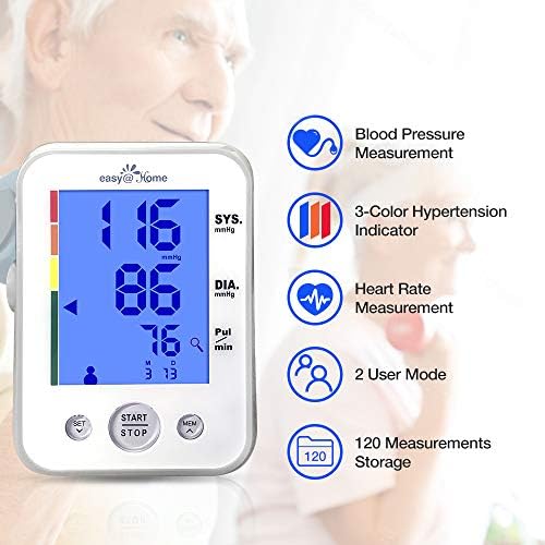 Accurately monitor blood pressure in the comfort and convenience of your home or on the go with the Easy@Home EBP-095. Designed with intuitive technology, your results will quickly display on the large, backlit LCD display which also gauges healthy and dangerous results. This model fits comfortably around your upper arm and is easy to operate with your other hand.