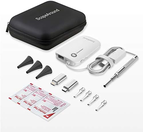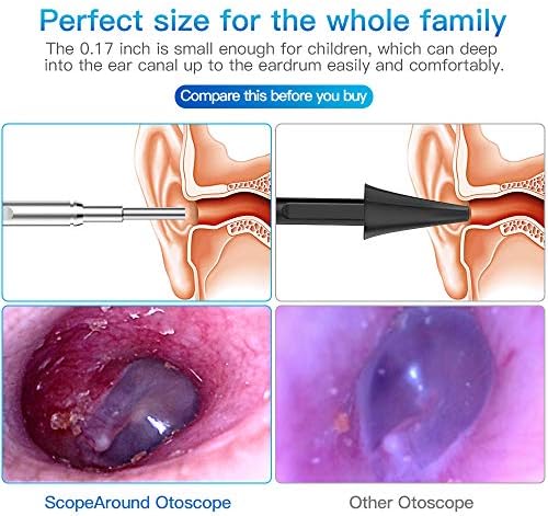 【0.17in Ultra-Slim and High-tech Chip】 : ScopeAround 4.3 mm ultra-slim HD otoscope is much thinner than the most otoscopes, so you can reach deep into the ear canal up to the eardrum easily and comfortably. The High-tech Chip perfectly solves overheating problems, so you will not feel burned even use for a long time.
