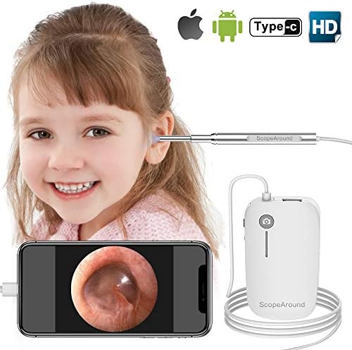 Otoscope iPhone, Scopearound New Upgrade 4.3mm Ultra-Slim HD Ear Scope Camera Digital Otoscope, Earwax Cleaning Tool with 6 LED Lights for iPhone and Android