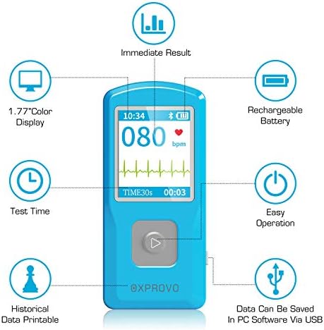 OXPROVO Portable EKG/ECG Heart Monitoring Devices with Software Compatible with Windows & Mac Detects AFib Bradycardia and Tachycardia in 30 seconds