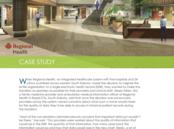 When a western South Dakota integrated healthcare system made the decision to migrate the entire organization to a single electronic health record, providers voiced concerns about the quality of data they would be able to access in historical patient records during the transition. Find out how Regional Health was able to make the transition as seamless as possible for their providers and clinical staff.
