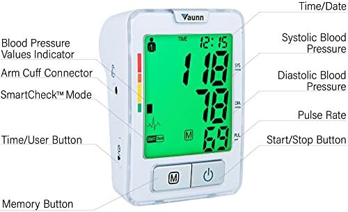 Vaunn Medical Fully Automatic Accurate Upper Arm Digital Blood Pressure Monitor and Pulse Rate Monitoring Machine (Sphygmomanometer) with Patented Smartcheck and GentleRead Technology – FDA Cleared