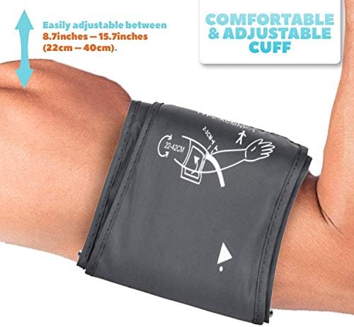 COMFORTABLE & ADJUSTABLE CUFF – Our automatic upper arm blood pressure monitor comes with a detachable and comfortable blood pressure cuff. This BP monitor’s cuff is also easily adjustable between 8.7inches – 15.7inches (22cm – 40cm).