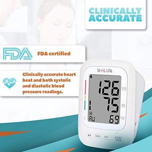 YMT Life Blood Pressure Monitor – Automatic Upper Arm Blood Pressure Machine with Cuff – FDA Approved Digital Hypertension Detector with LCD Screen – Clinical Accuracy for Heart Rate Pulse and BP