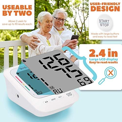 USER-FRIENDLY DESIGN – Made with large buttons and easy to read text as well as a clear LCD display, this upper arm blood pressure monitor is simple for elders and those with disabilities to use. It also allows 2 users to save up to 90 results each.